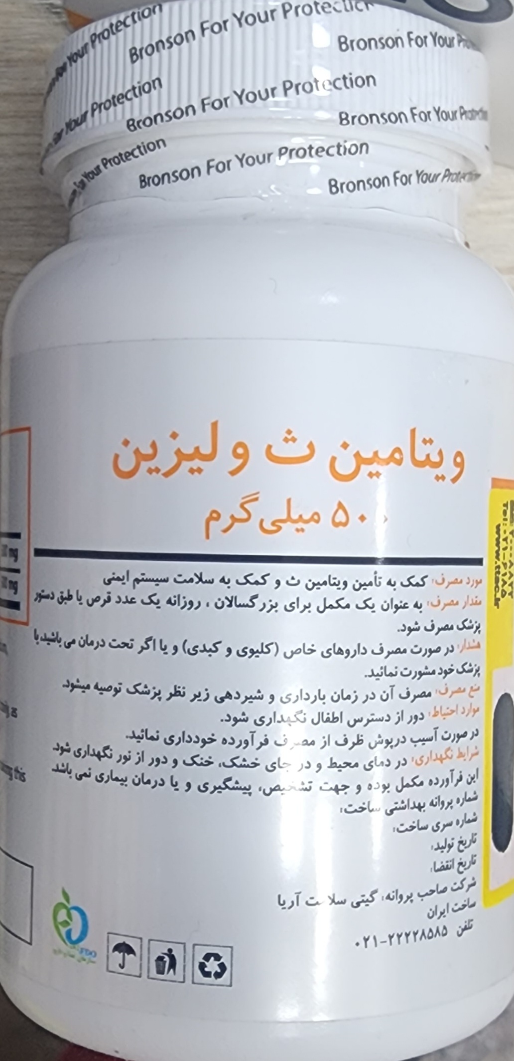 ویتامین ث و لیزین 500 میلی گرم ۶۰عدد برانسون(انقضا۲۰۲۶/۰۲)