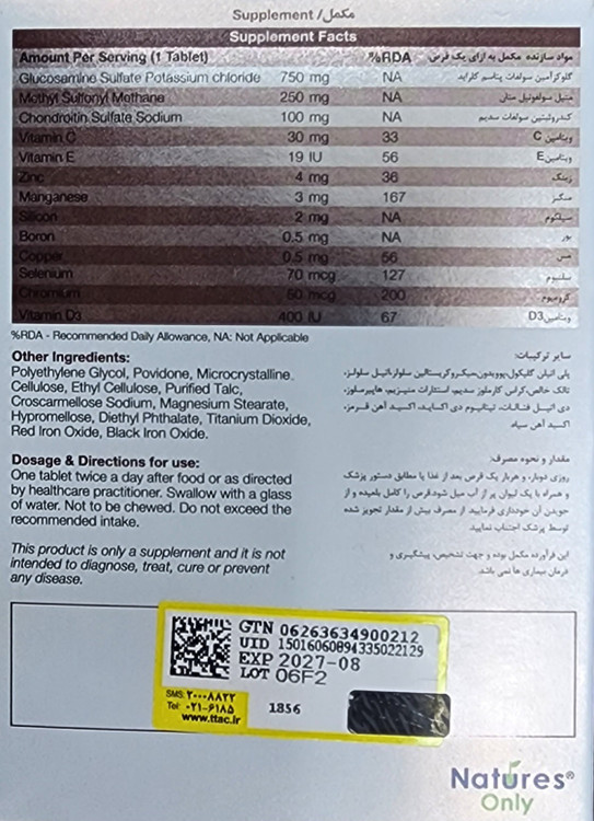 کارتیژن دی فورت، حاوی ترکیباتی نظیر گلوکزآمین، کندرویتین سولفات، ام اس ام و ویتامین D