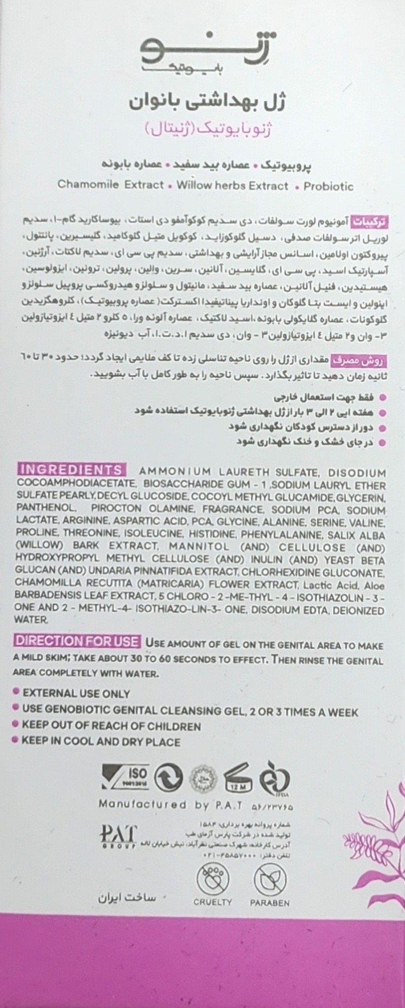 ژل شستشوی بانوان ژنوبایوتیک کاهش دهنده التهابات ناحیه تناسلی