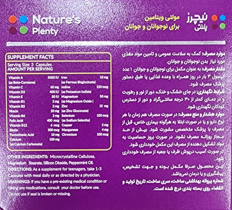 مولتیویتامین نوجوانان و جوانان نیچرز پلنتی، ترکیبی جامع و متعادل از ویتامینها و مواد معدنی مورد نیاز بدن در دوران رشد و جوانی