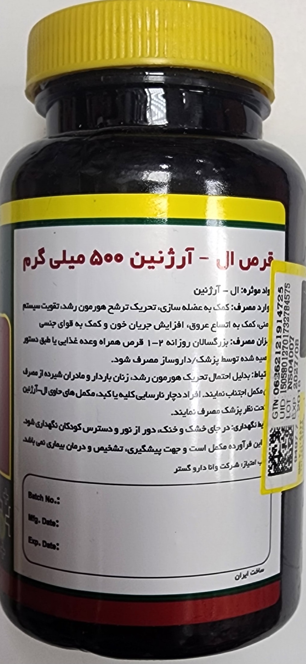 ال آرژنین 500میلی گرم قرص 30 عددی۲۰۲۷/۰۶