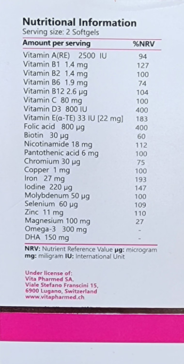 نحوه مصرف پرگمام ویتالی تون: روزانه 2 عدد سافت ژل همراه با غذا