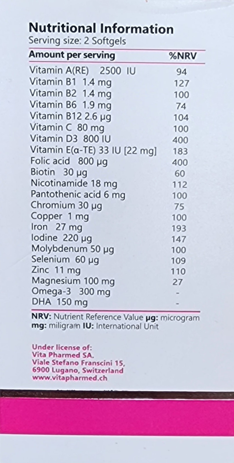 حاوی 800 میکروگرم فولیک اسید برای کمک به پیشگیری از بروز نقص لوله عصبی در جنین
