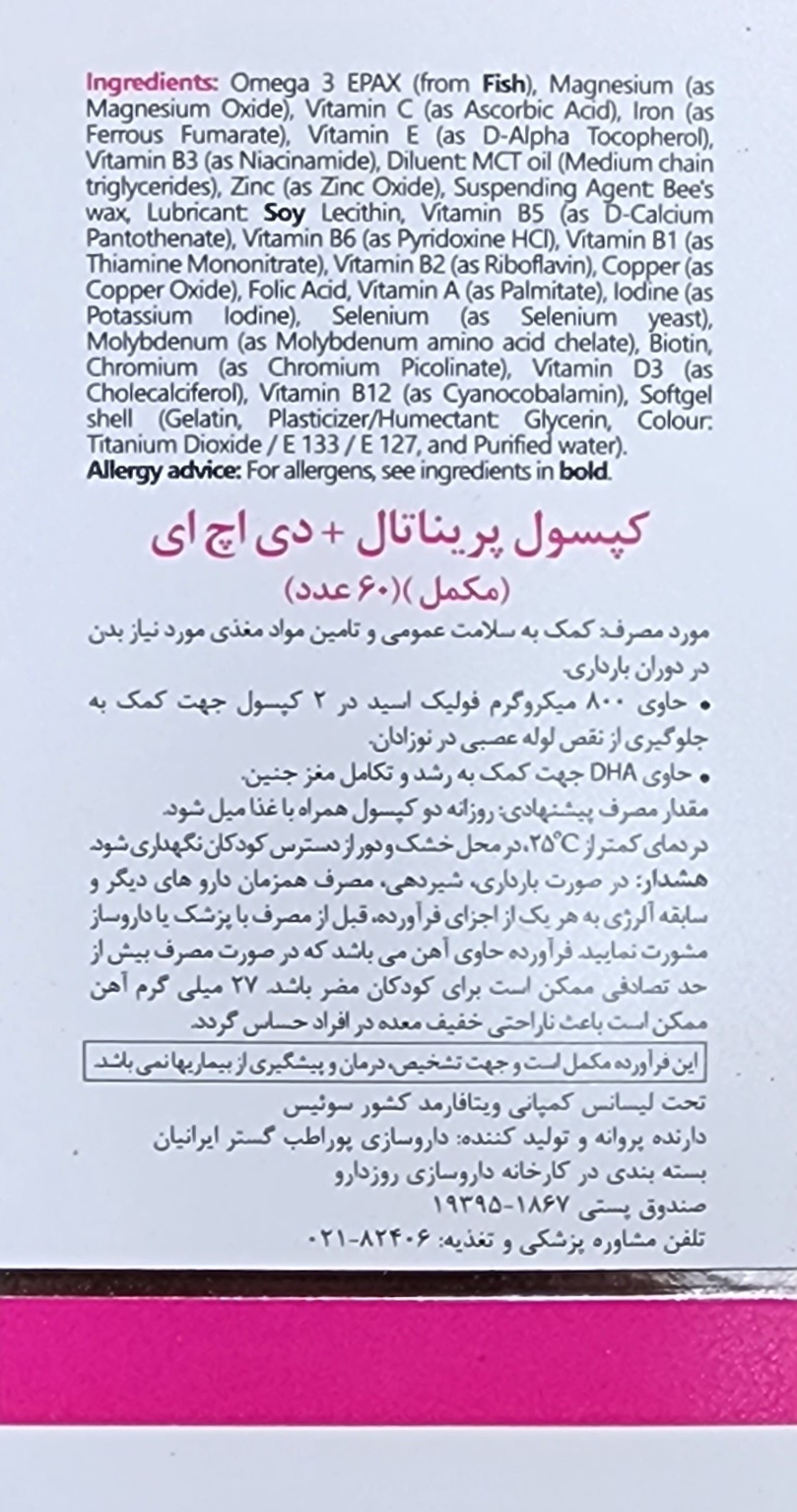 حاوی DHA (اسید چرب امگا3) برای کمک به رشد و تکامل مغز جنین