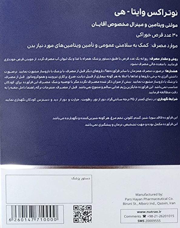 وایتا هی قرص نوتراکس ۳۰عددی ۲۰۲۷/۰۸