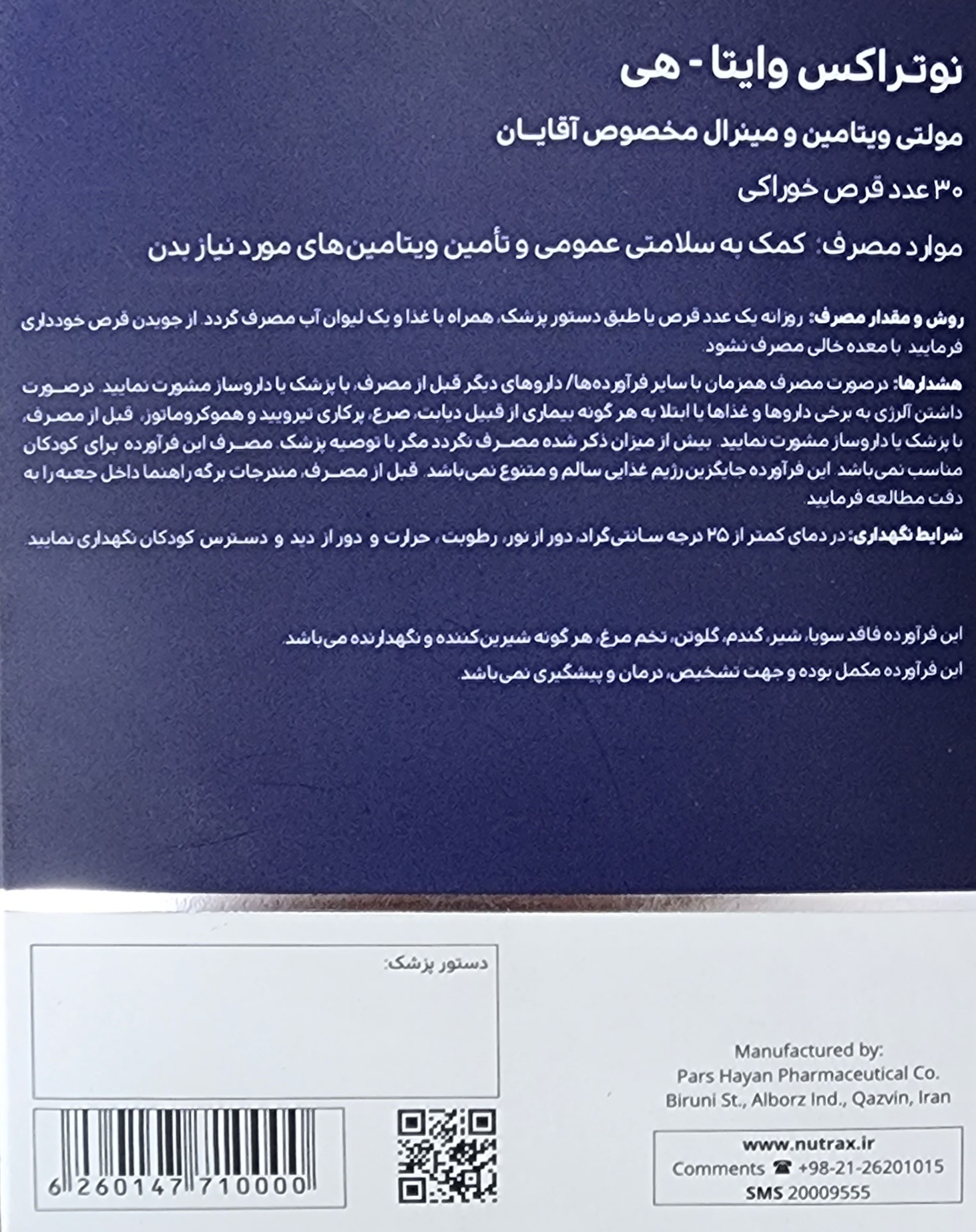 وایتا هی قرص نوتراکس ۳۰عددی ۲۰۲۷/۰۸