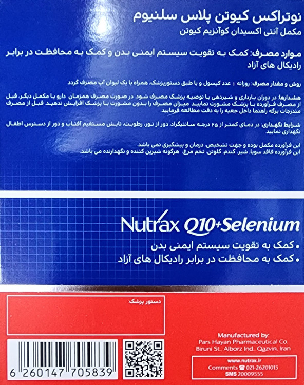 نوتراکس کیوتن پلاس سلنیوم حاوی سلنیوم، کوآنزیم Q10 و ترکیبات آنتی اکسیدانی دیگر برای افزایش توان سیستم ایمنی بدن