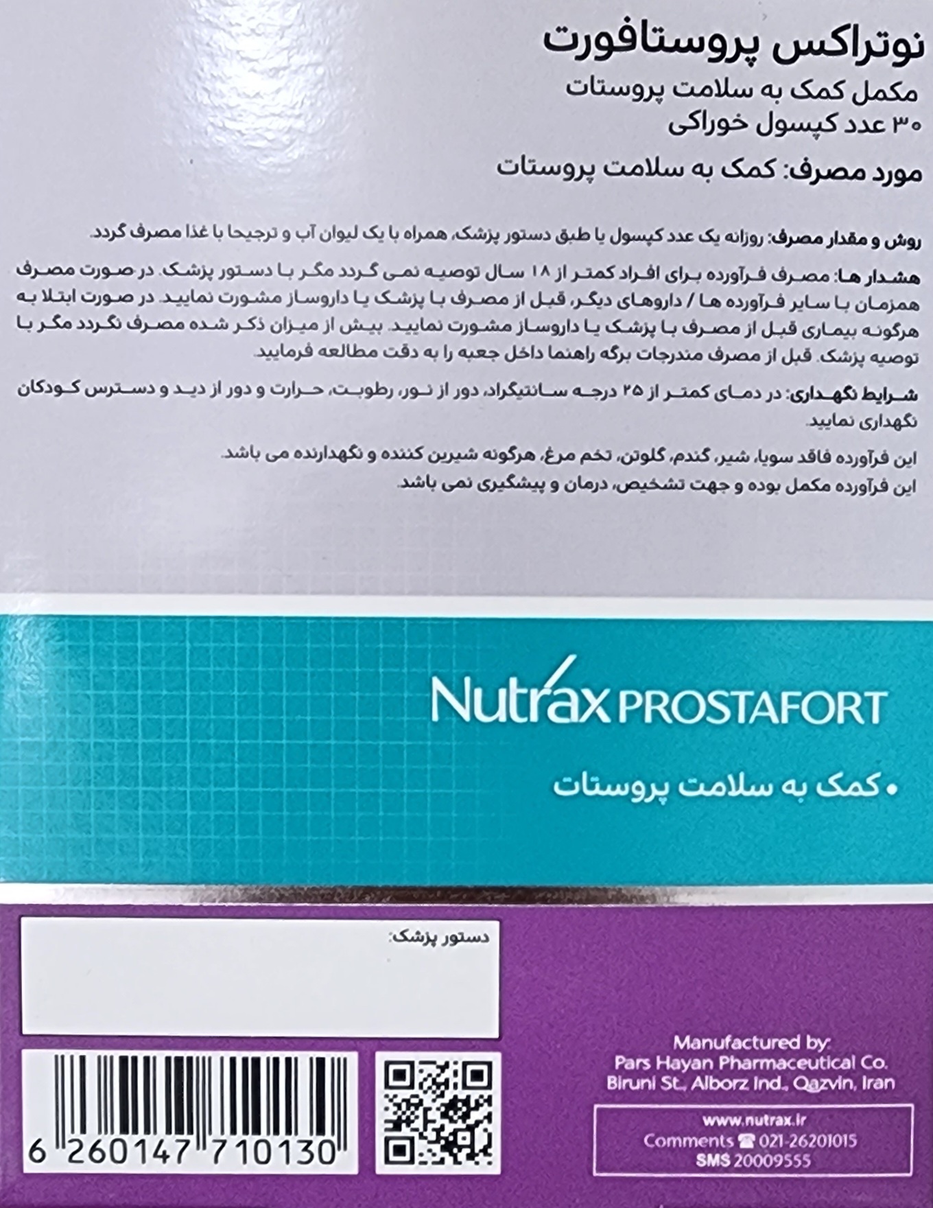 هر جعبه از نوتراکس پروستا فورت، مناسب استفاده به مدت 30 روز میباشد.