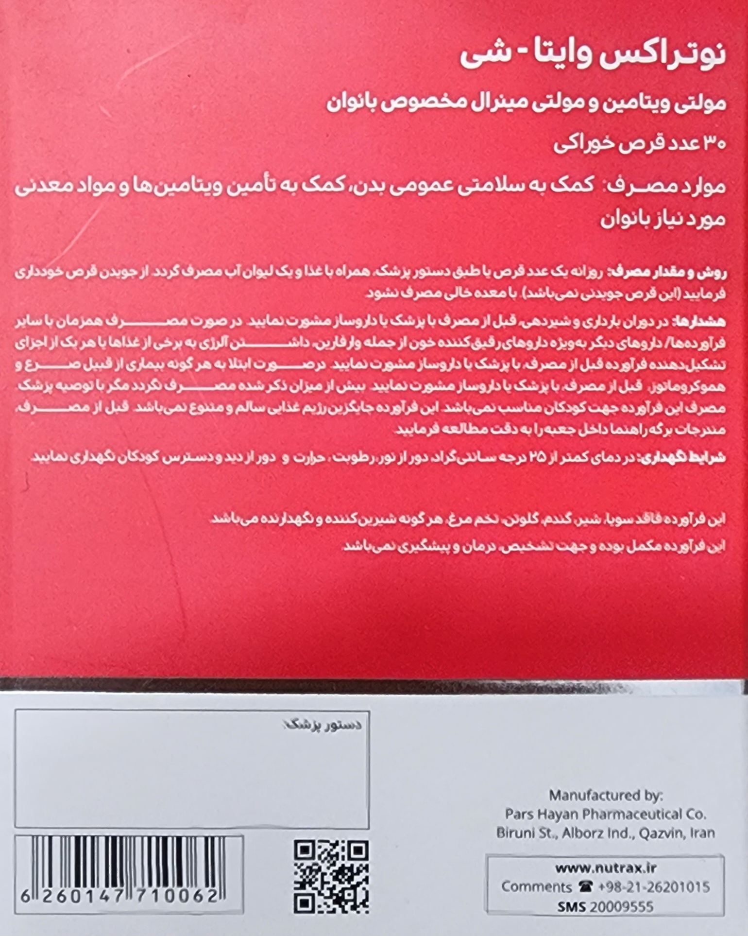وایتا شی قرص نوتراکس ۳۰عددی ۲۰۲۷/۰۸