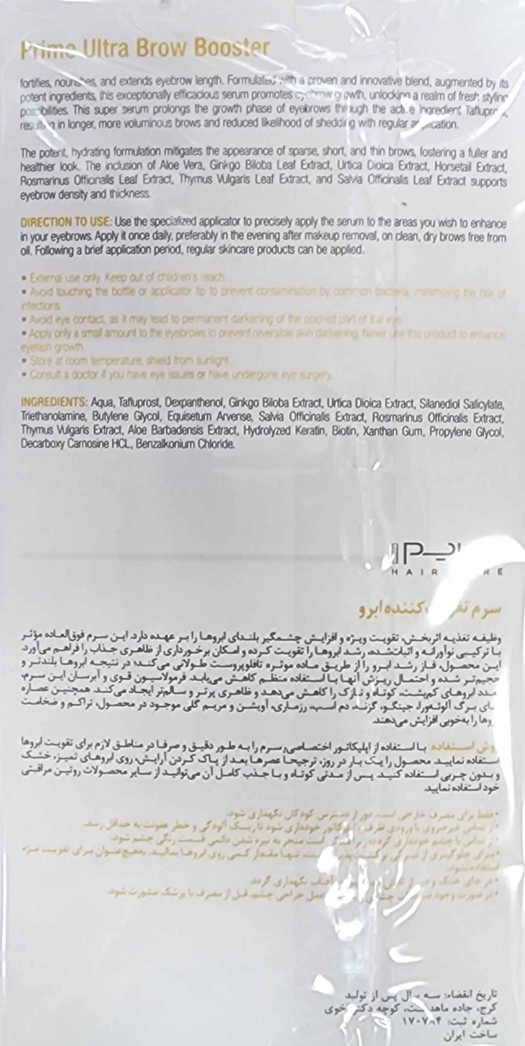 سرم تقویت کننده ابرو اولترا برو پرایم ۱۴۰۷/۰۴