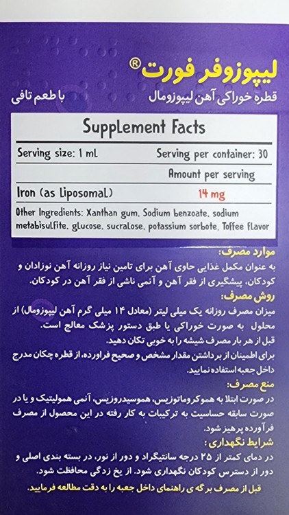 قطره آهن لیپوزوفر فورت تامین کننده آهن مورد نیاز برای رشد و تکامل نوزادان و کودکان