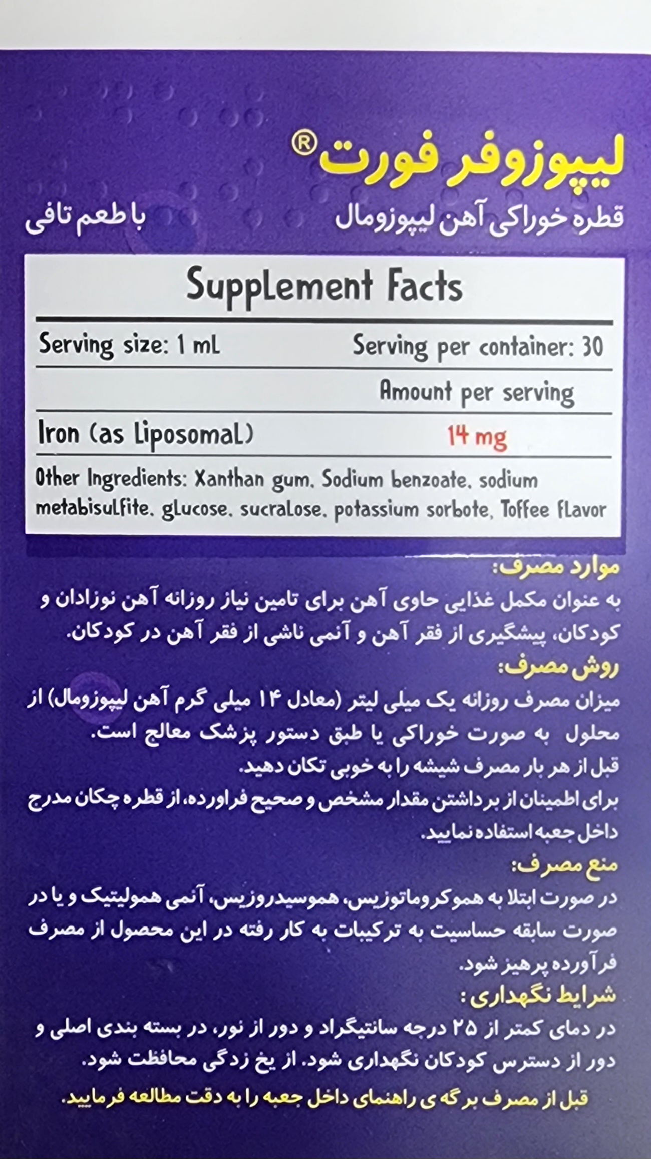 قطره آهن لیپوزوفر فورت تامین کننده آهن مورد نیاز برای رشد و تکامل نوزادان و کودکان