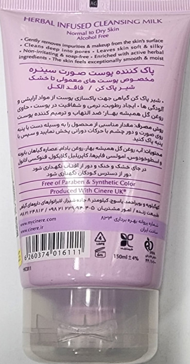 شیر پاک کن سینره پاک کننده پوست از مواد آرایشی و آلودگی مناسب پوست معمولی تا خشک