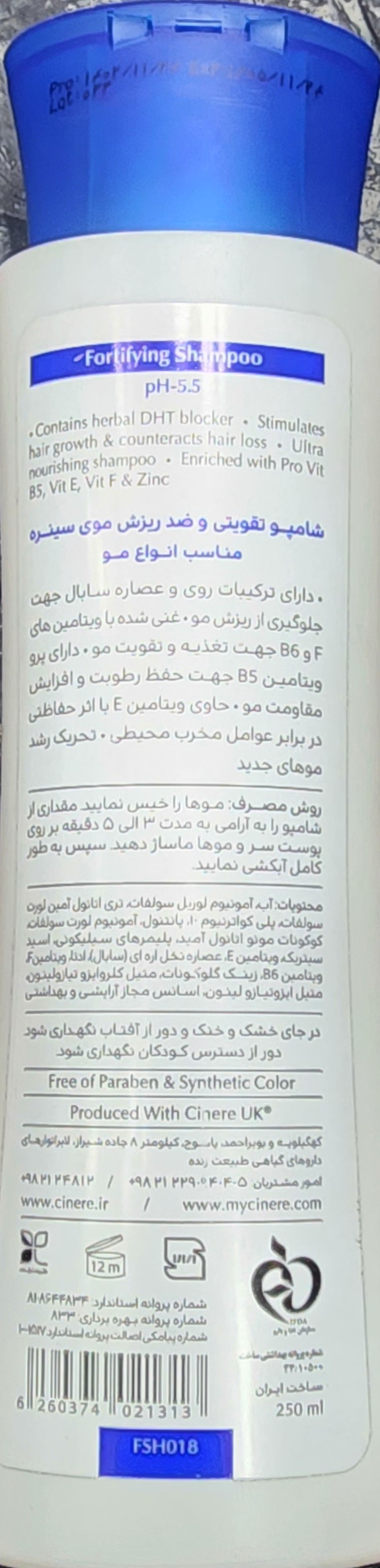 ویتامین B5 و F در شامپو سینره جهت تغذیه و تقویت موها