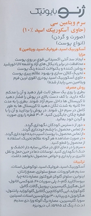 سرم ویتامین سی آسکوربیک اسید سرو ژن ژنوبایوتیک ۱۴۰۶/۱۰