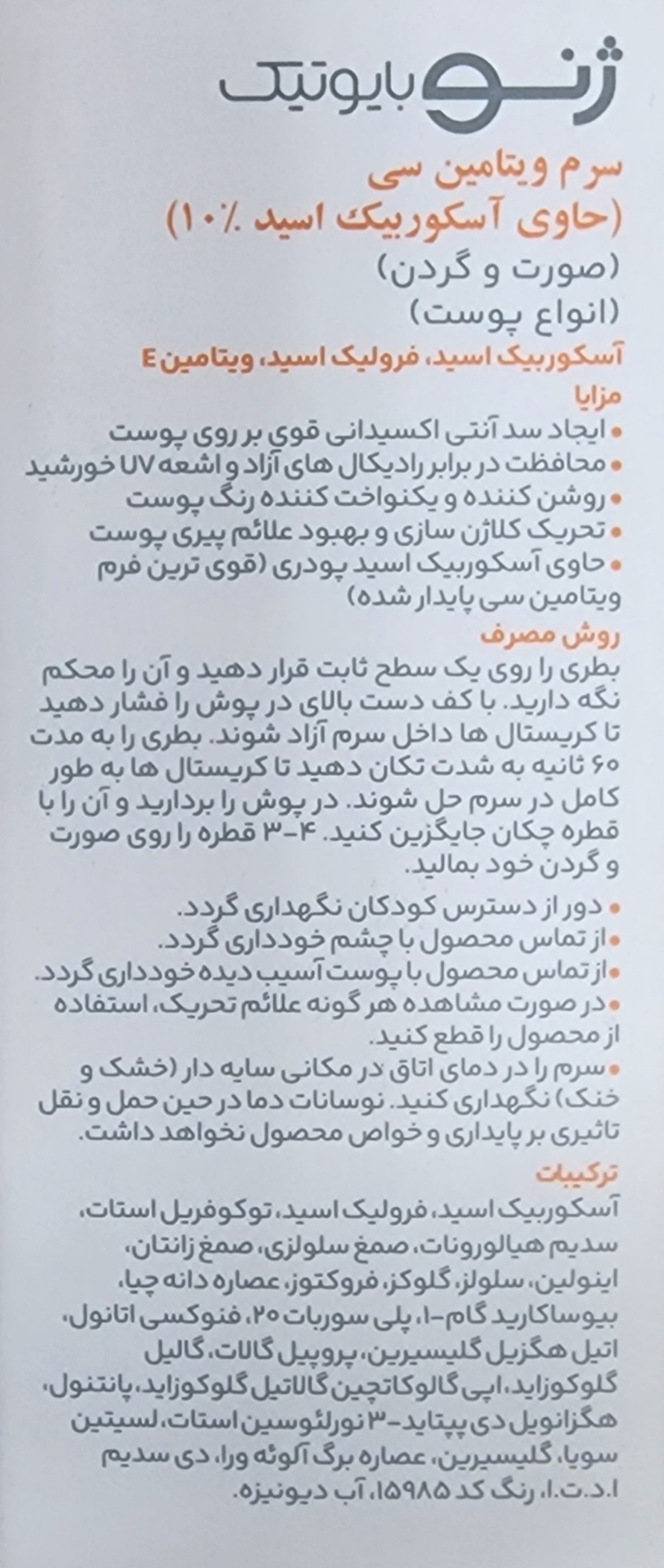 سرم ویتامین سی آسکوربیک اسید سرو ژن ژنوبایوتیک ۱۴۰۶/۱۰