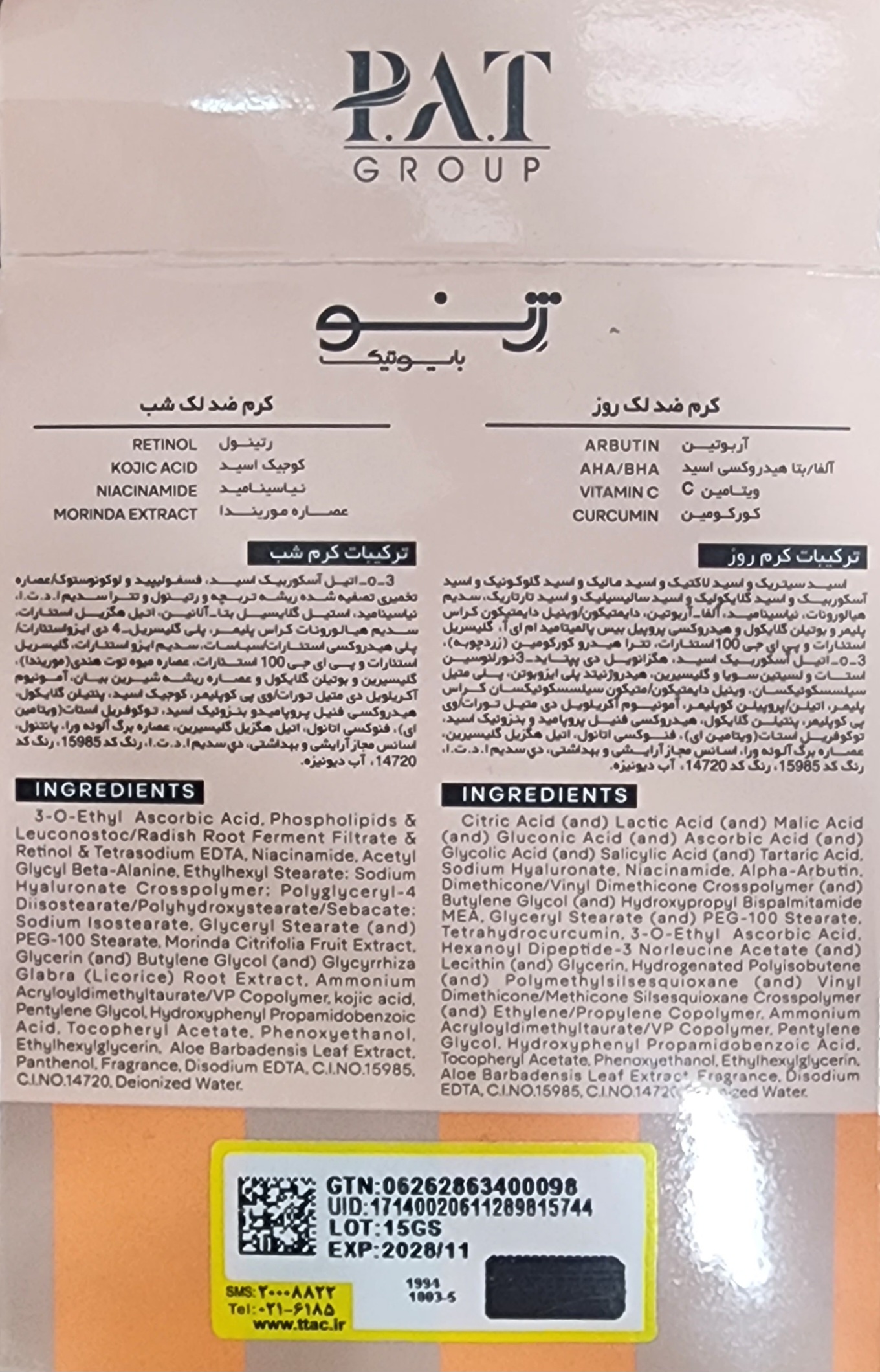 کرم ضد لک روز و شب ژنوبایوتیک محتوی یک کرم روز و یک کرم شب ضدلک