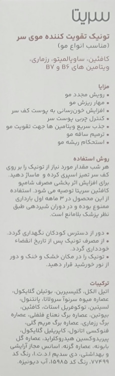 هیرتونیک سریتا، دارای ترکیبی ویتامینه جهت افزایش ضخامت موهای نازک و در حال رشد