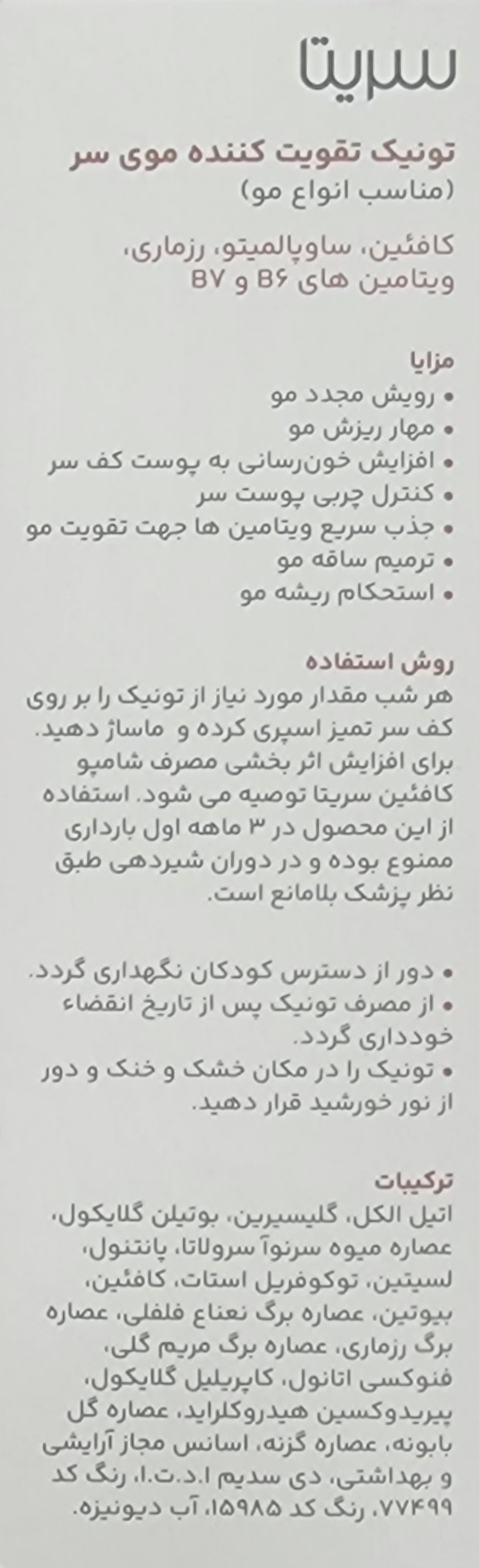 هیرتونیک سریتا، دارای ترکیبی ویتامینه جهت افزایش ضخامت موهای نازک و در حال رشد