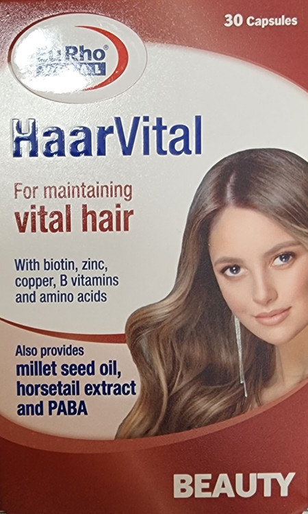 کپسول هر ویتال یوروویتال حاوی آمینو اسیدهای ضروری، عصاره گیاه دم اسبی، روغن دانه ارزن، پابا و ویتامینهای گروه ب و زینک و … به سلامت پوست، مو و ناخن کمک موثری میکند. همچنین از ریزش موها و سفید شدن موها جلوگیری میکند و موهایی سالم و زیبا را برای شما به ارمغان میآورد.