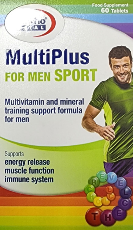 قرص مولتی پلاس فور من اسپرت یوروویتال یک مکمل تغذیهای حاوی انواع ویتامینها، مواد معدنی، اسیدهای آمینه ضروری و عصاره جینسینگ بوده که برای تامین انرژی مورد نیاز بدن، عملکرد عضلانی و تقویت سیستم ایمنی ضروری است.