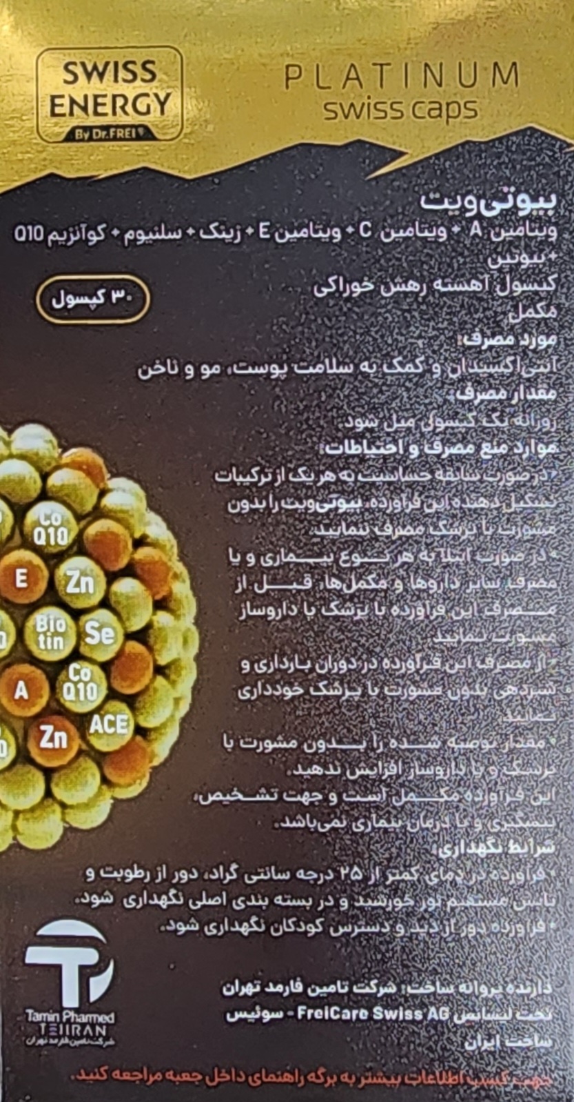 حاوی زینک، سلنیوم، کوآنزیم کیوتن، بیوتین و ویتامینهای A ،C و E