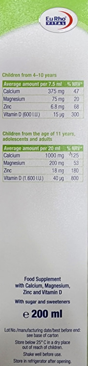 ترکیبات شربت استئوجویس یوروویتال: کلسیم، منیزیم، زینک (روی) و ویتامین D