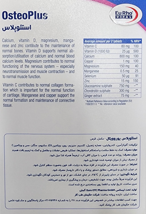 هر جعبه از Osteo Plus یورو ویتال، تقریبا مناسب برای استفاده به مدت 22 روز است.