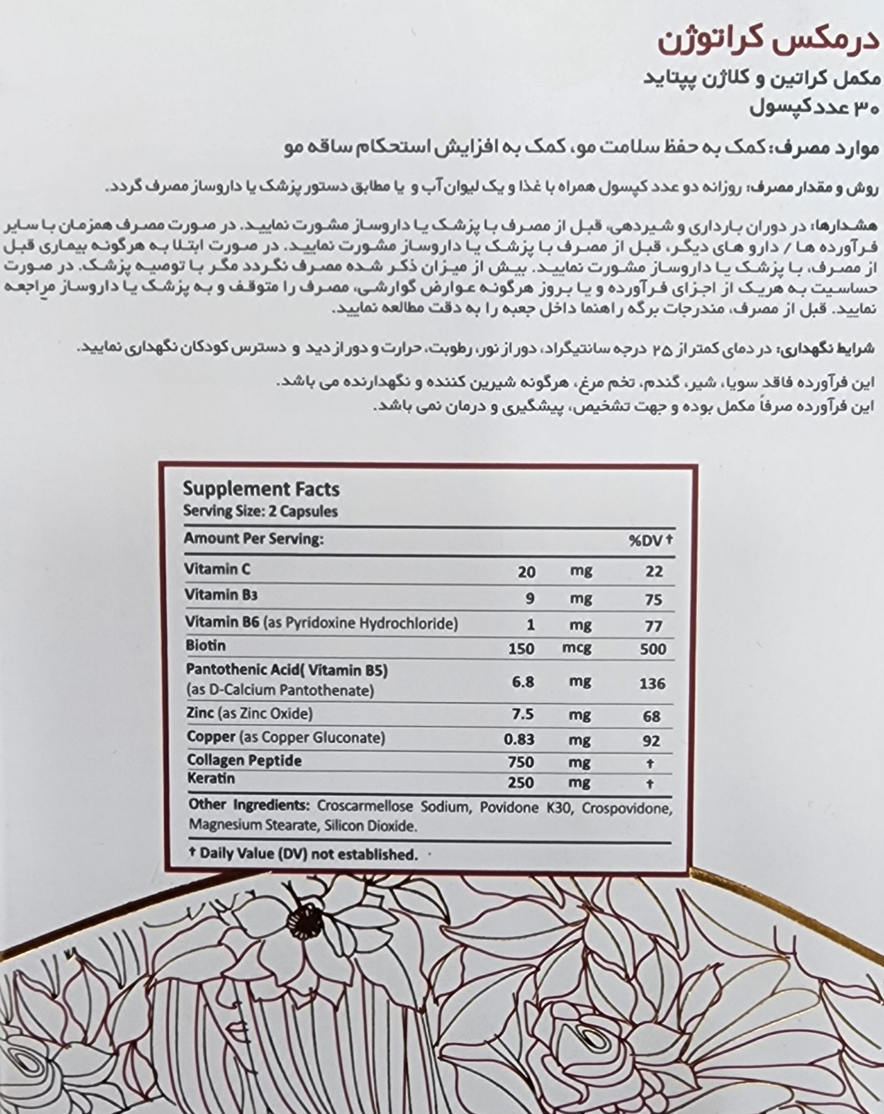 کراتوژن درمکس کپسول (انقضا ۸/۲۰۲۶)۳۰ عددی
