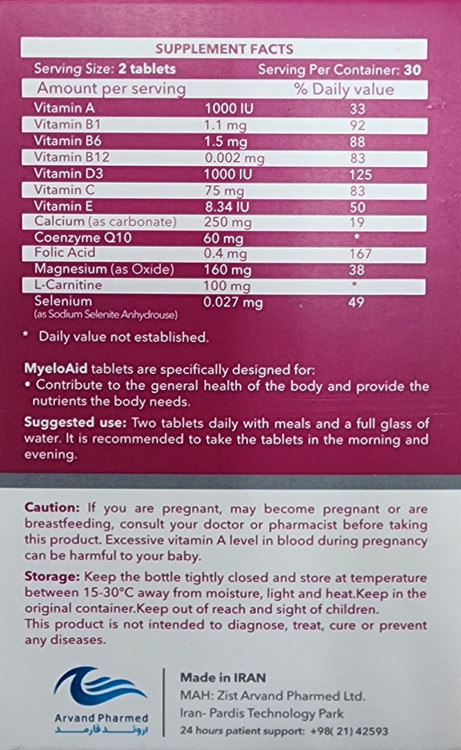قرص میلو اید اروند فارمد با طراحی تخصصی ویتامینهای مختلف، مواد معدنی و ریز مغذیها است. این قرص جهت پیشگیری و اصلاح ضعف و خستگی ناشی از رژیم غذایی نامناسب و بهبود عملکرد سلولی است.