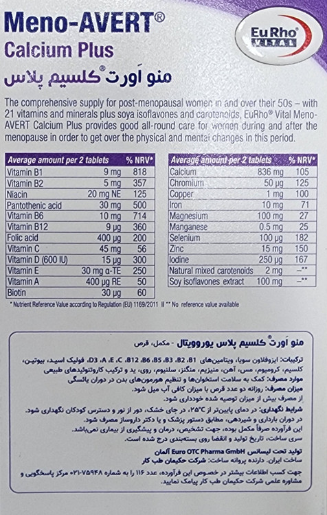 منو اورت کلسیم پلاس، مکمل مولتیویتامین-مینرال مخصوص دوران یائسگی