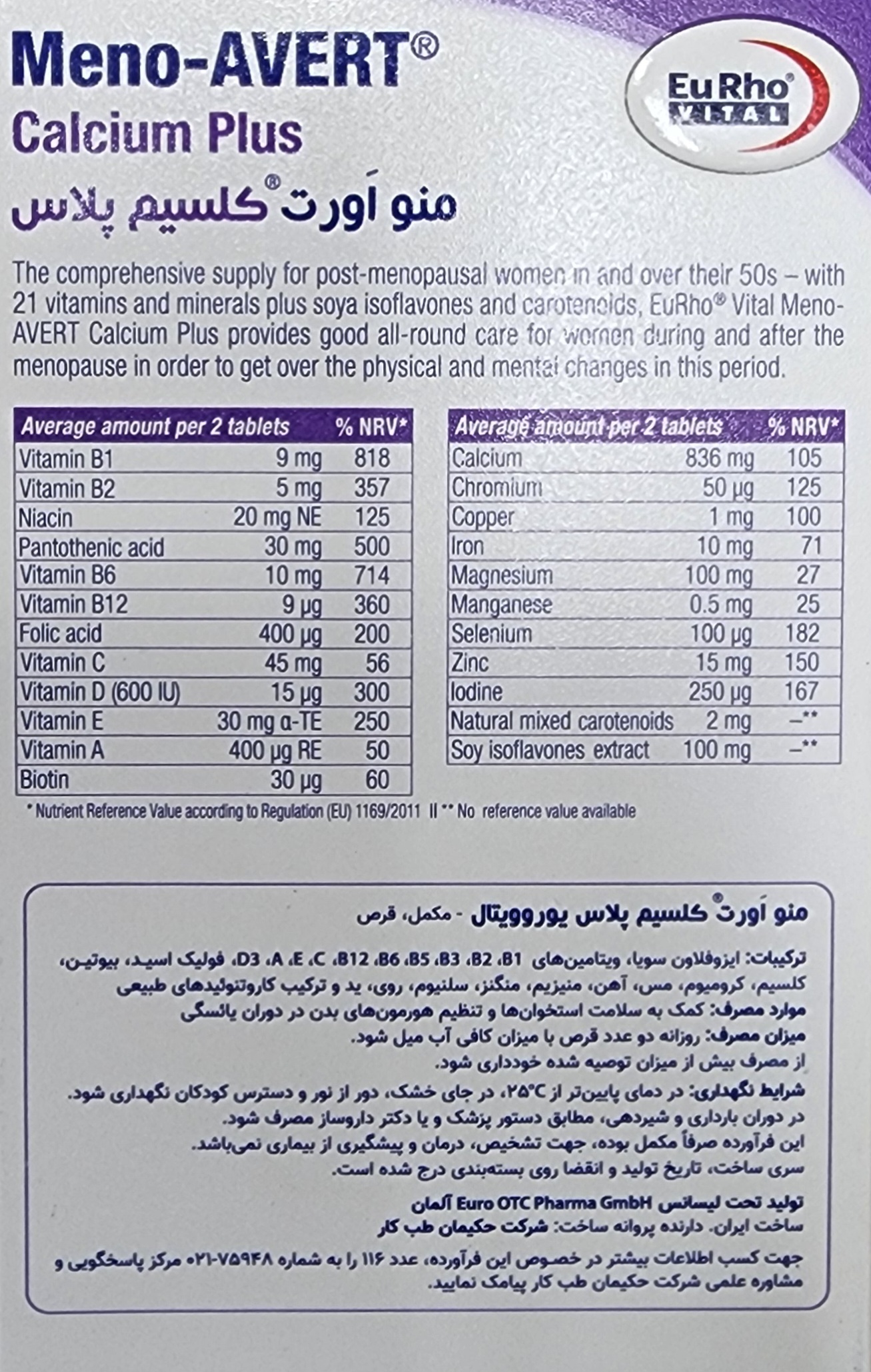 هر جعبه از قرص منو اورت کلسیم پلاس یوروویتال تقریبا مناسب برای استفاده به مدت 22 روز است.