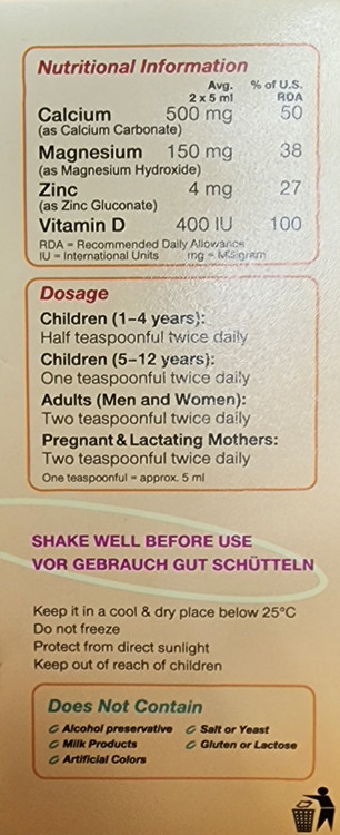 شربت کلسی شور، مکمل تغذیهای دارای کلسیم، زینک، منیزیم و ویتامین D