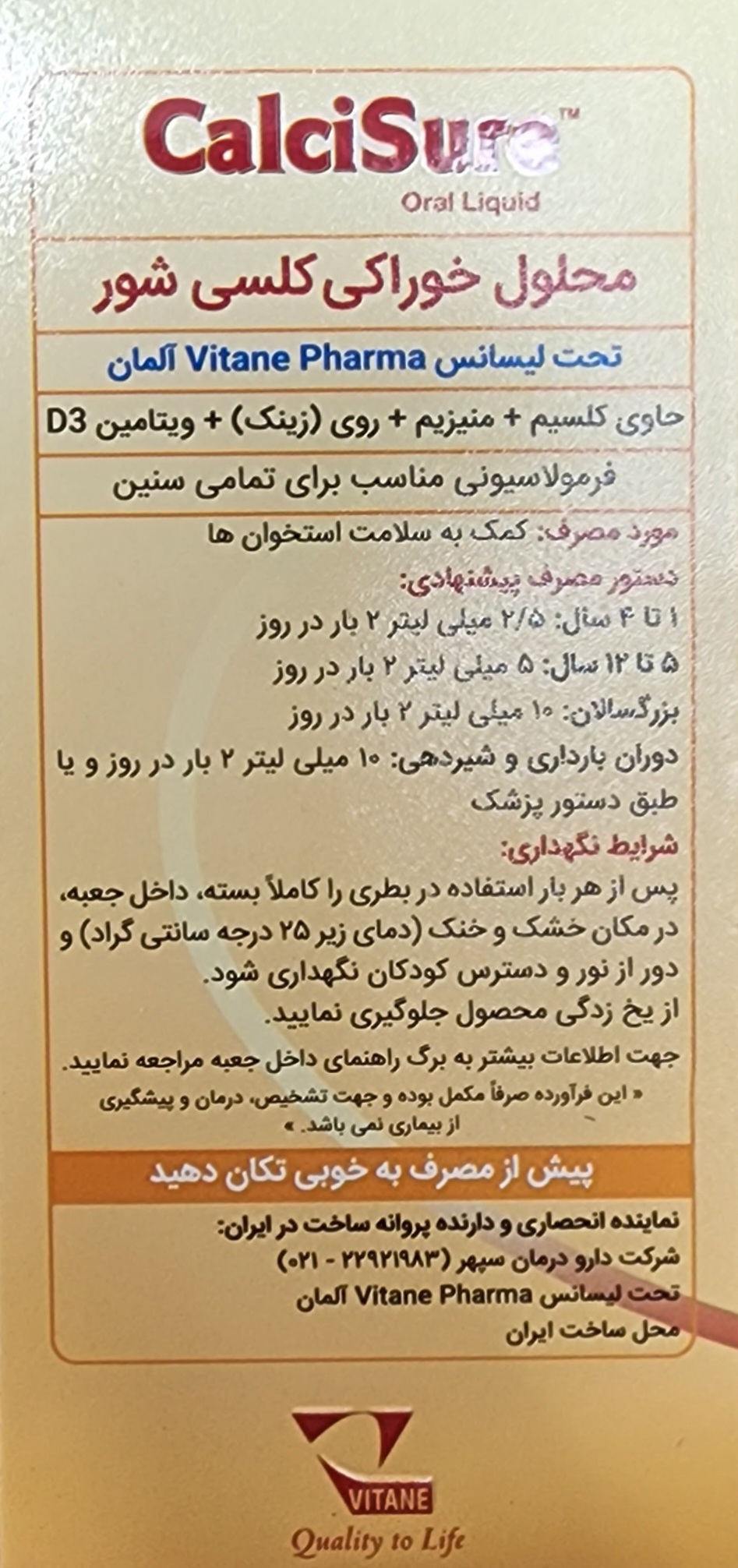 شربت کلسی شور، مکمل تغذیهای دارای کلسیم، زینک، منیزیم و ویتامین D