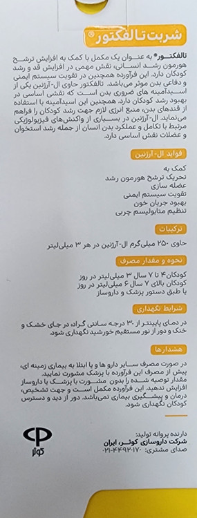 تالفکتور شربت افزایش قد (انقضا ۲۰۲۶/۱۰)