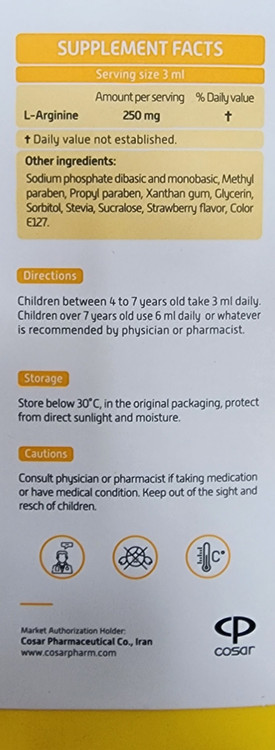 شربت تالفکتور، فرآورده مکمل حاوی اسید آمینه ال آرژنین