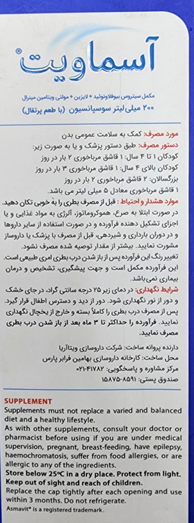 شربت آسماویت، مولتی ویتامین مینرال کودکان تقویت کننده سلامت عمومی