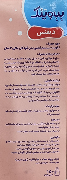 بب وینک دیفنس شربت ایمنی (انقضا۲۰۲۶/۰۲)
