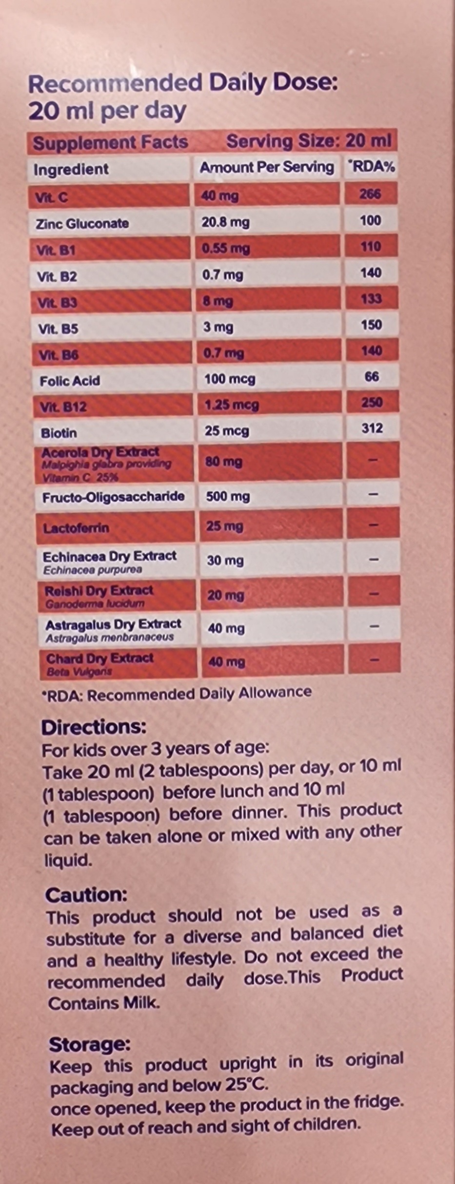 شربت دیفنس بب وینک با ترکیبات طبیعی و گیاهی موثر خود باعث تقویت سیستم ایمنی، کاهش شدت و مدت زمان علائم سرماخوردگی و ارتقا سلامت عمومی بدن کودکان بالای ۳تا۱۸ سال میشود.