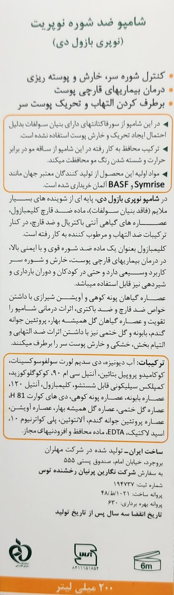شامپو نوپری بازول دی، ضد شوره قوی با کلیمبازول، مهار رشد قارچهای عامل شوره