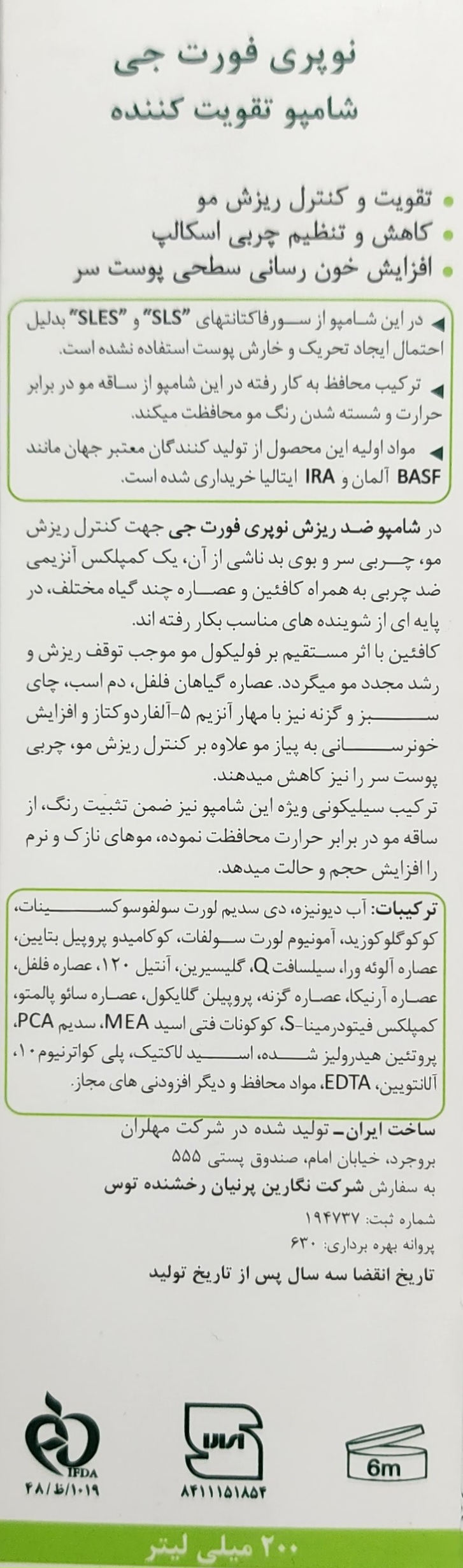 نوپریت شامپو تقویت کننده فورت جی( انقضا ۱۴۰۶/۰۱)