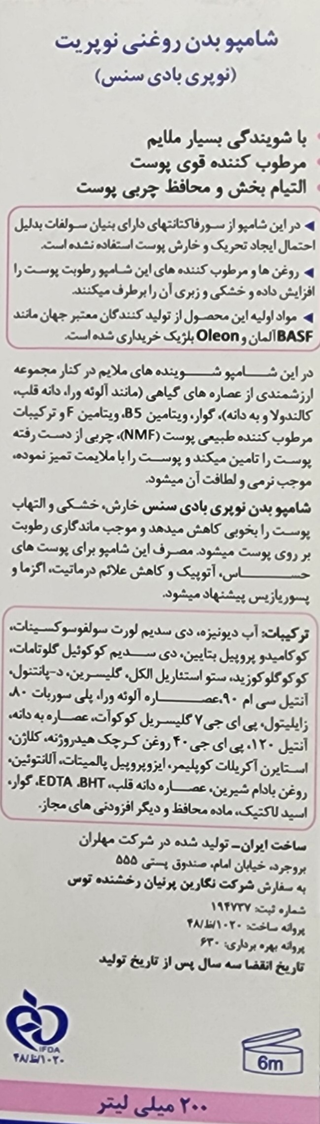شامپو بدن روغنی نوپریت، دارای شویندگی بسیار ملایم ضمن اثر مرطوب کنندگی