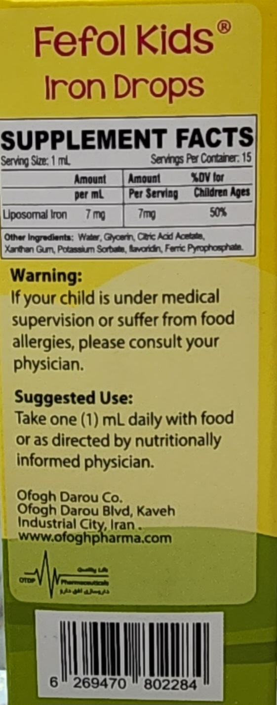 ترکیبات اصلی قطره آهن فیفول کیدز (Fefol Kids Drops):