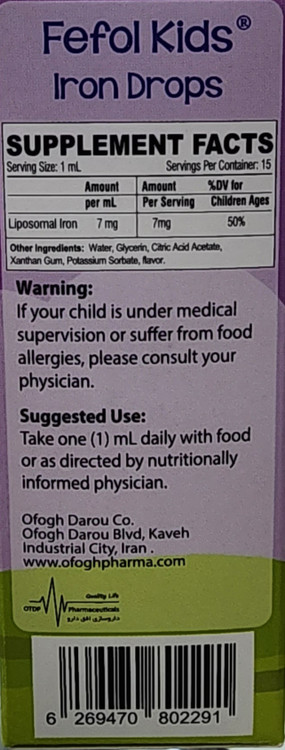 ترکیبات اصلی قطره آهن فیفول کیدز (Fefol Kids Drops):