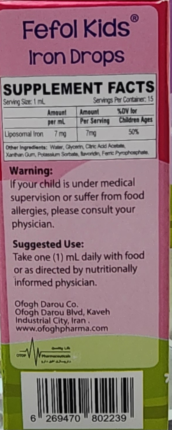 ترکیبات اصلی قطره آهن فیفول کیدز (Fefol Kids Drops):