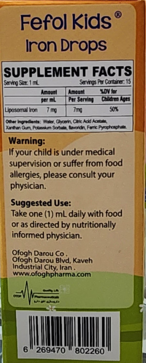 ترکیبات اصلی قطره آهن فیفول کیدز (Fefol Kids Drops):