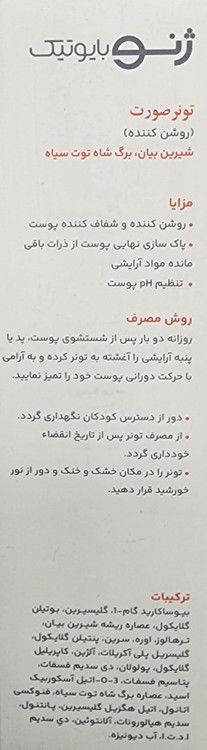 تونر روشنکننده ژنوبایوتیک کاهش دهنده قرمزی و التهاب پوست با داشتن عصاره شیرین بیان