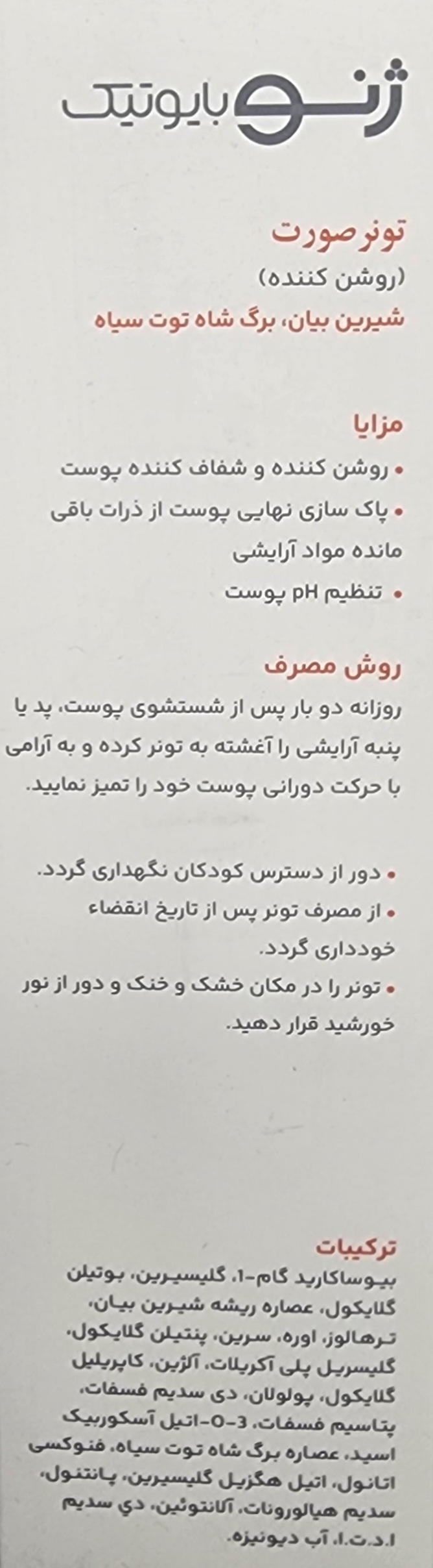 تونر روشنکننده ژنوبایوتیک کاهش دهنده قرمزی و التهاب پوست با داشتن عصاره شیرین بیان