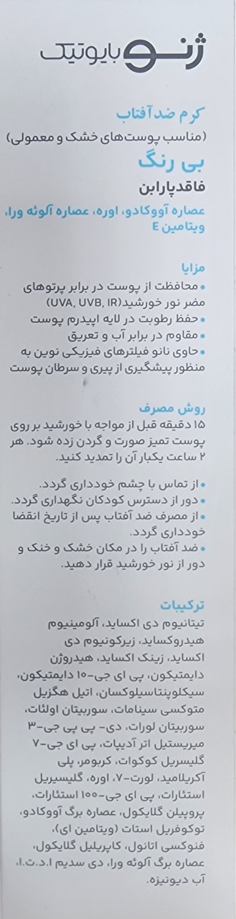 ضد آفتاب ژنوبایوتیک پوست خشک محافظت کننده موثر و قوی از پوست در برابر اشعه های UVA و UVB