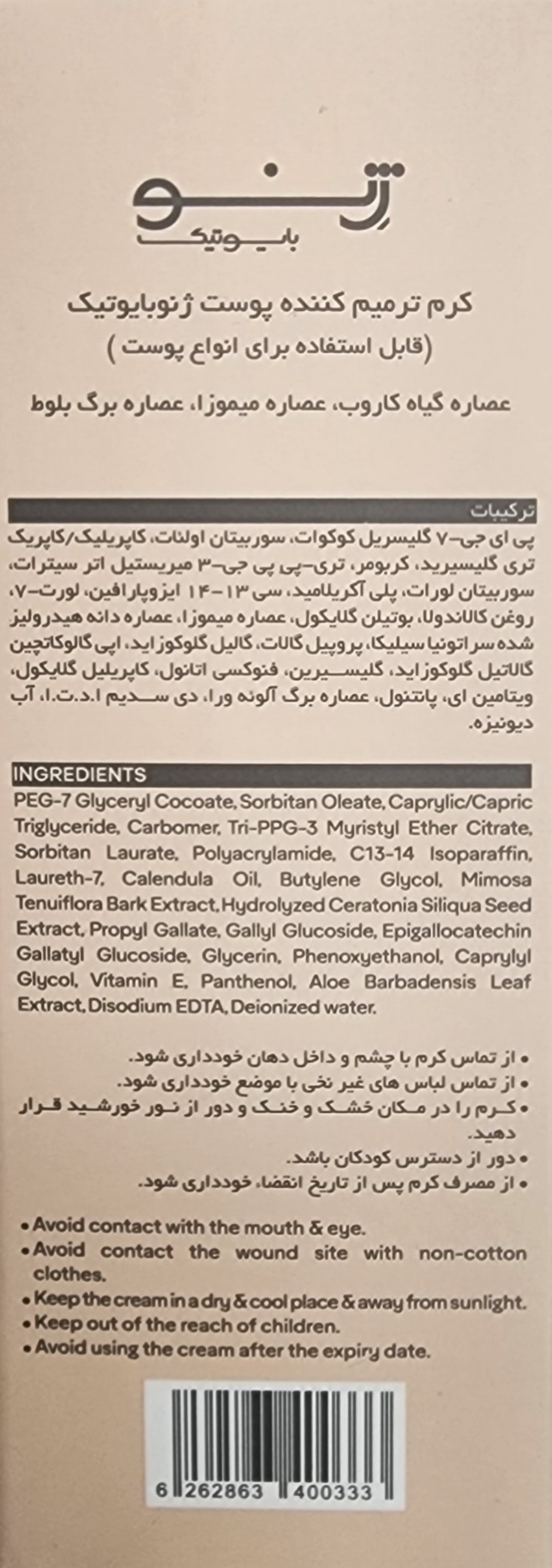 کرم ترمیم کننده ژنوبایوتیک، دارای خواص ضد خارش و ضد عفونی کننده برای پوست های آسیب دیده